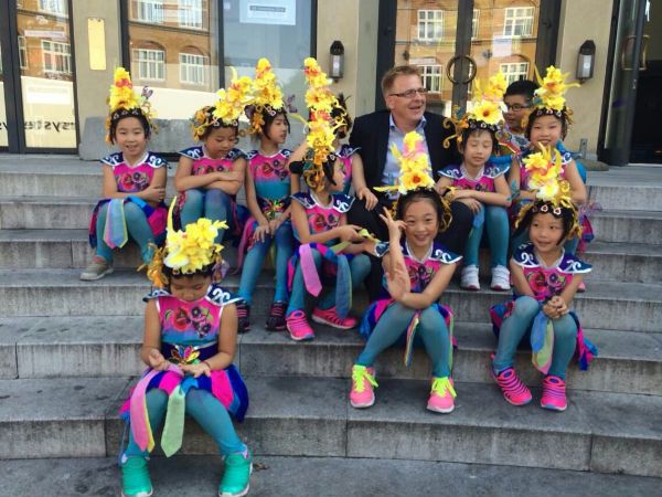 9月19日上午,我校十二名学生与四川木偶团的叔叔阿姨们合作,在丹麦贺森斯市的两所学校为师生演出。下午丹麦贺森斯市长与孩子们见面并为我校一行十二名学生颁奖,下午,十二名孩子与木偶剧团的专业演员们合作在贺森斯剧院室外为当地人民表演,并作为观众参加贺森斯戏剧节的开场秀。经过这几天的多场表演,与各种环境的不断变化,孩子们的适应能力明显提高,并且更加自信。