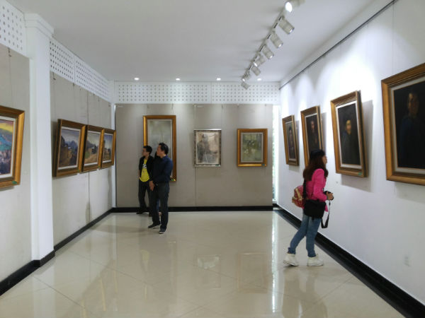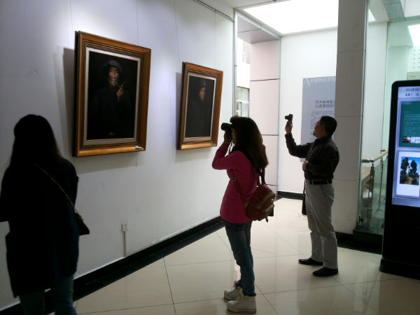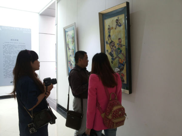 首先,李老师带领嘉宾一行驻足在天府艺术中心,对正在展出的水彩、油画作品进行了交流、讨论,对水彩和油画作品中表现出来的色彩、造型、技法等美术语言的不同效果进行了对比,近距离体会了不同画种的不同表现效果。