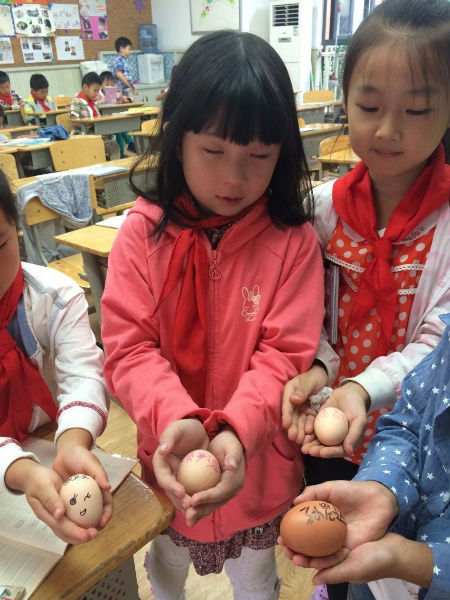 9月24日,傅老师给二年级3班的小朋友布置了一项特别的作业:带一个煮熟的鸡蛋到学校。傅老师话音刚落,小朋友们就纷纷议论起来,大家你一言我一语,都想带最大的鸡蛋到学校。第二天一早,傅老师便进教室告诉大家:“今天大家都要把鸡蛋装在自己的衣服口袋里,想方设法保护它,不能弄碎了,等到下午放学的时候我们再统计哪些小朋友的鸡蛋完好无损。”接下来的课间,小朋友们休息的时候都很小心, 我们揣着“小宝宝”进行了正常的常规活动,大家都生怕鸡蛋打碎了,即使平时最爱疯跑的孩子这时候都像一只安静的小兔,待在教室守着自己的鸡蛋宝宝。有些孩子还专门用课间时间把鸡蛋带到操场晒晒太阳,时不时拿出来擦一擦……小朋友们对这个小鸡蛋都爱护有加,细心呵护。要放学了,傅老师让同学们拿出鸡蛋,统计有多少鸡蛋完好无损,最后,只有 10个鸡蛋是完好的,其他的都碎了。接着傅老师让孩子们说说为什么自己的鸡蛋会碎,有的说是自己走路的时候不小心撞着墙壁了,有的说是自己拿出来看的时候一不留神鸡蛋掉地上摔碎了,还有的说是在和伙伴打闹的时候撞碎了……随后傅老师说到:“其实我们的妈妈怀我们的时候就像我们今天带着鸡蛋一样,但是却比我们带着鸡蛋更辛苦。我们只带一天,可是妈妈却是十个月,而且这十个月中,妈妈还要承受着我们一天天增加的体重,还要承受着因此带来的呼吸困难,待到分娩的时候,妈妈还要承受剧痛把我们生下来,他们多么不容易啊!此时你最想对妈妈说什么?”小朋友们都说以后要为妈妈分担家务,做好自己的事情不让她担心。傅老师说道:“感恩应该从现在做起,请大家利用国庆长假,为妈妈做力所能及的家务,感谢母亲的十月守护恩。”孩子们都保证一定会做。
