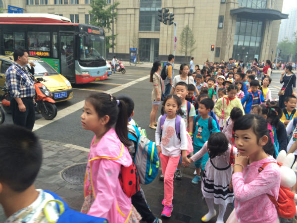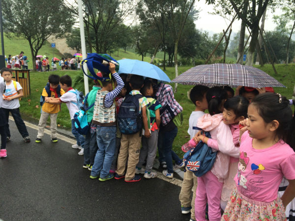 在游学往返中小泡泡们集体观很强,没有一个掉队,同时在过红绿灯时,很多开车的叔叔、阿姨们都主动将车停下让孩子们先通过,这让孩子们感受到社会的和谐和温暖。在下雨时,会所的主管阿姨主动接待了大家避雨,让小泡泡们感受到关键时刻伸出援助之手帮助别人的重要性。