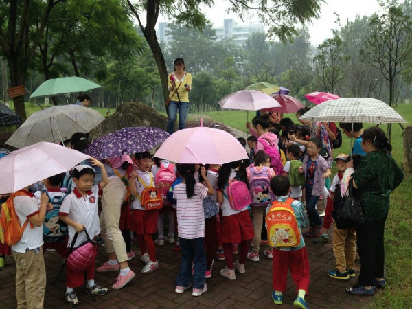 2014年9月30曰上午,泡小(天府)组织一、二年级的孩子此次锦城公园游园游学活动。成都锦城公园就象座落在繁华都市中一颗碧绿的明珠,天气状况虽算不上晴空万里,刚刚被秋雨洁净后的空气非常清新。孩子们排着队,牵着手,井然有序的向公园前进。湖水清澈见底、湖面风平浪静、湖流弯弯曲曲和湖边簇立的鲜花……。