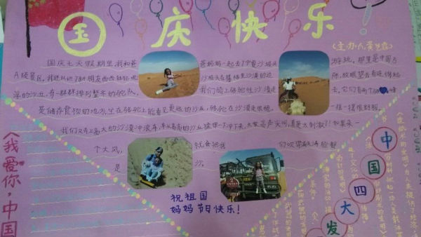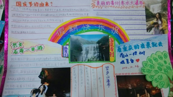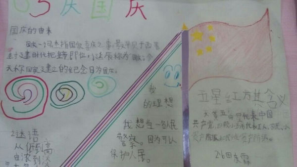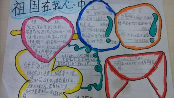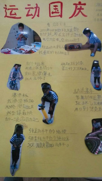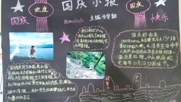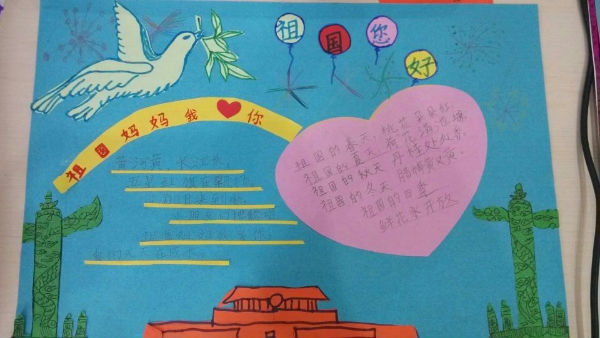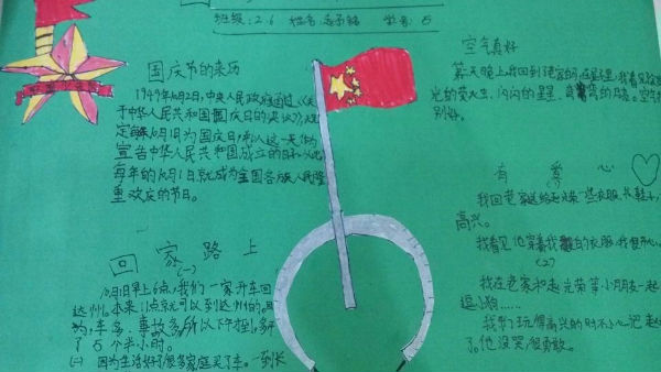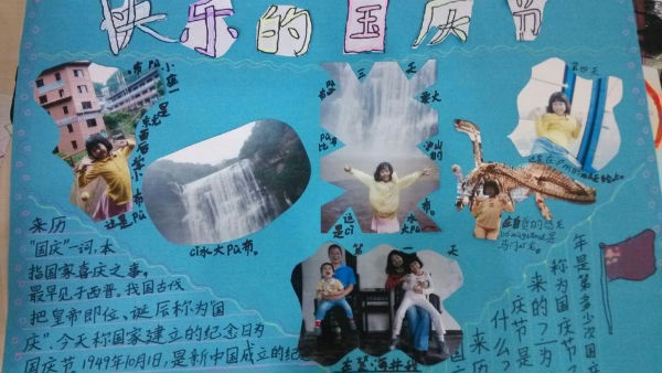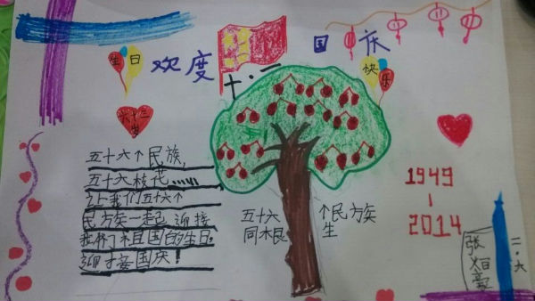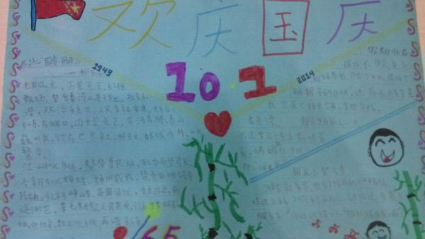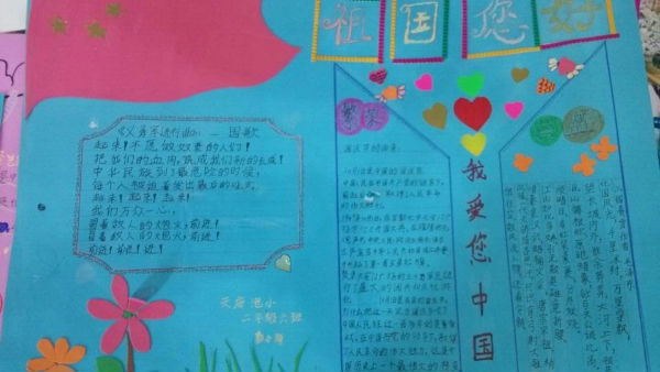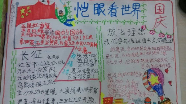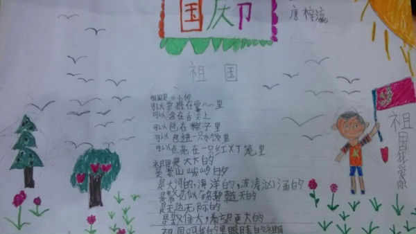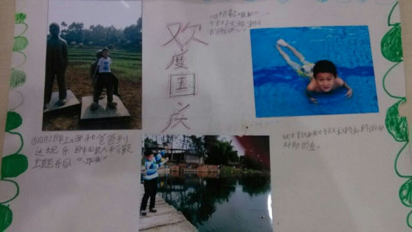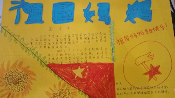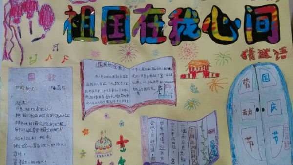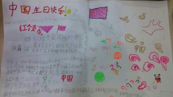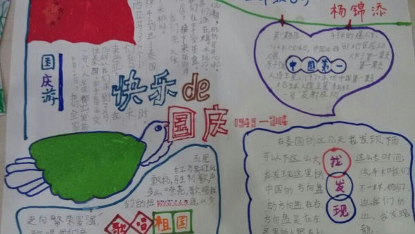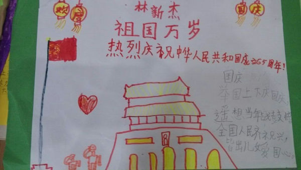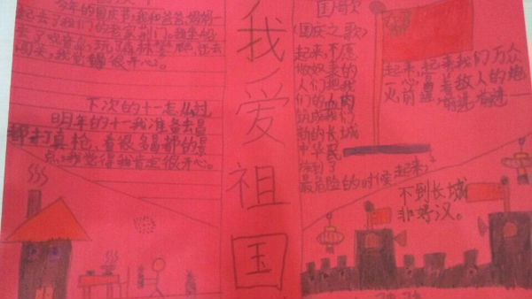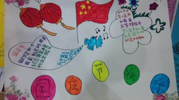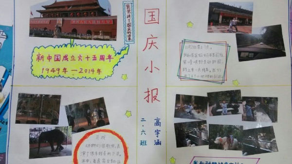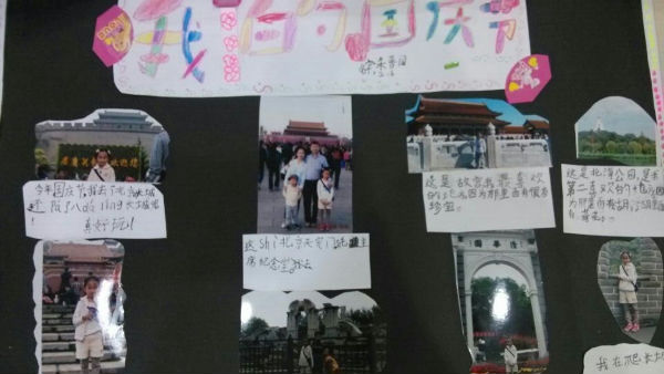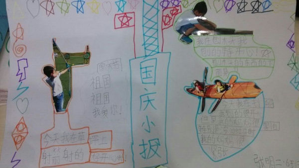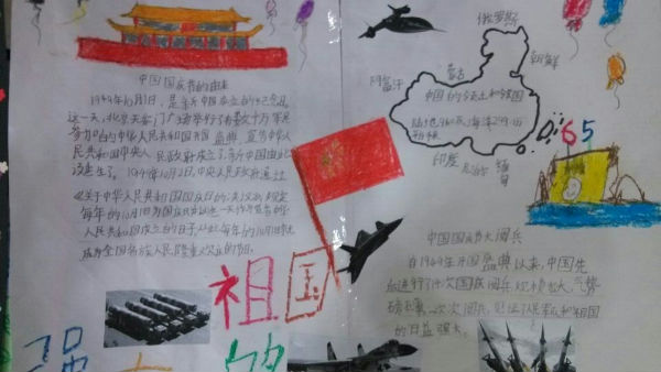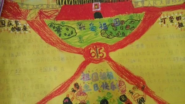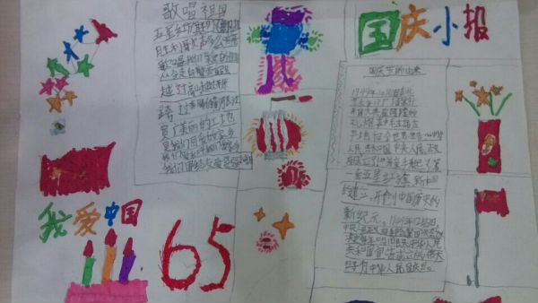 伴着金秋明媚的阳光,迎着十月的云淡气爽,我们迎来了中华人民共和国六十五岁华诞。翠竹轩的小泡泡们举办了制作“心目中的祖国”国庆小报活动。 49位小泡泡花心思、动脑筋、动小手,制作出一张张精美的小报,有的同学介绍国庆的由来,中华历史,魅力无限;有的同学介绍假期游玩的大好河山,自然遗产,充满魅力;有的同学写出了心中感受,好好学习,创造未来等等。