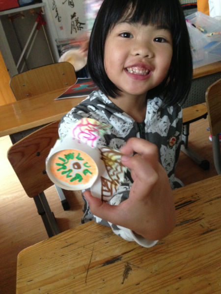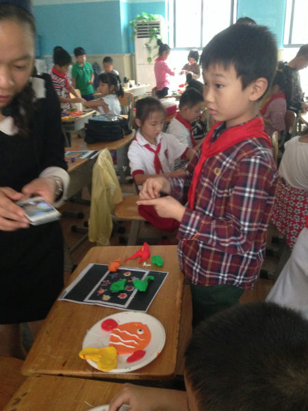 瞧!他们一张张笑脸,一副副作品,顿时,教室里呈现出一片欢乐的海洋!