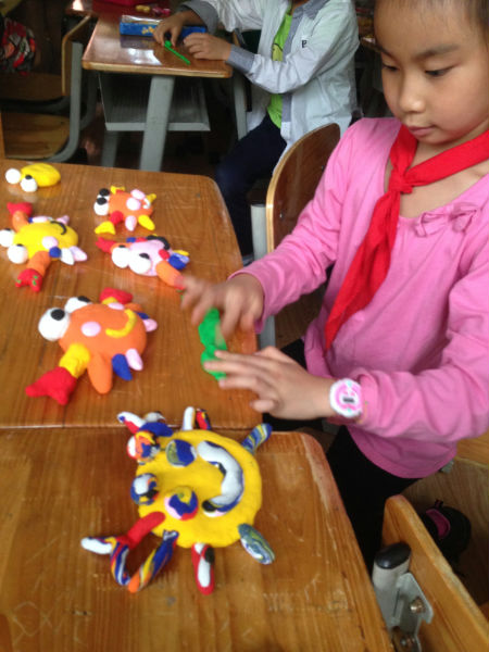 两个小时很短,二一班的泡娃娃们却即将由此进入他们亲手创意的海洋世界,幸福着吧孩子们!