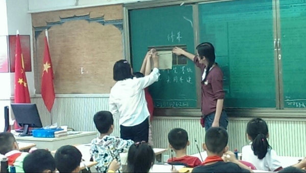 2014年10月9日,二年级四班迎来了一位特殊的客人——四川著名女书法家李鲤。李老师,受教于书法教育家宋勋锐老师。书法创作以行书、魏碑为主,亦擅篆刻。现为巴蜀诗书画院院长、四川通俗文艺研究会常务理事,深圳中日书画研究会理事,四川省草书研究会会员。