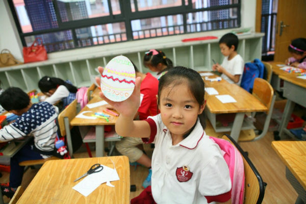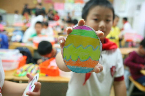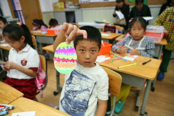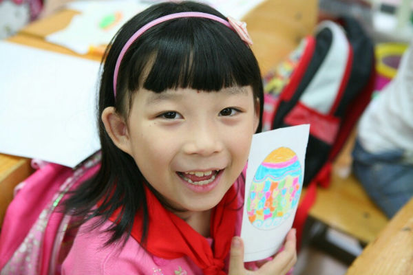 我们小学六年的班级文化方向是民间工艺。一年级的主题是风筝,寓意是放飞梦想,二年级的主题是剪纸(蛋),寓意是守护成长。开学初,我们开展了“守护鸡蛋大行动 体验妈妈怀胎艰辛”的活动,孩子们体会妈妈怀胎的辛苦,进入小学,不仅家人,还有学校的老师、保安叔叔、食堂阿姨和保洁阿姨一起守护小泡泡的成长。今天,孩子们都带来剪刀、纸和笔,跟着大泡泡一起创作。大家先拿出剪刀把白纸剪成鸡蛋状,然后在上面作画、涂色,最后,一幅幅精美的作品产生了,我们接下来会将这些作品贴到墙上。