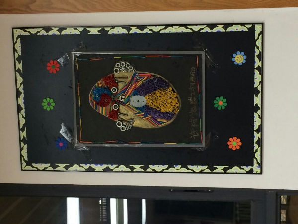 利用小泡泡们之前的周末小制作,家委会的爸爸妈妈们群策群力,提出了一个个优秀的方案,按照学校一切从简的要求,自己动手将方案落实到具体的装饰中,自带电钻、铆钉、玻璃胶、美工刀等工具,两位泡爸更是铆足了劲,又是钻孔,又是上铆钉的实在是太给力了。晚上8时许,终于大功告成,看到辛苦的好几个小时的成果,想到小泡泡们第二天就可以看到美丽的教室,我们不禁笑了。