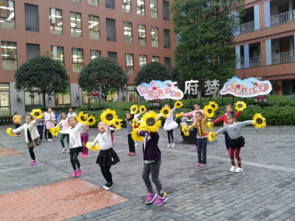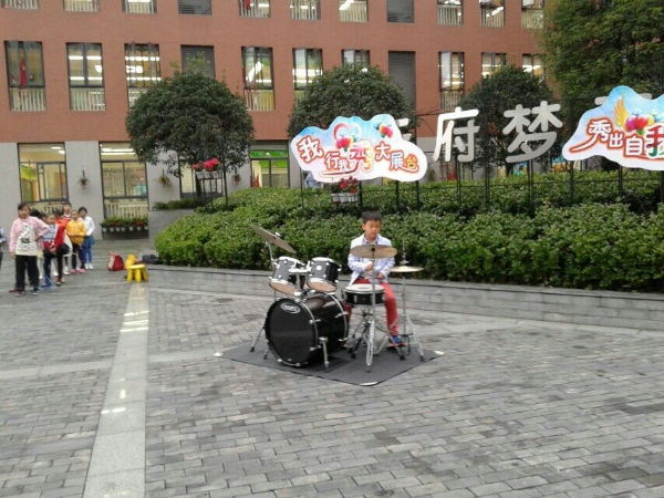 2014年10月17日上午8点,泡小天府演艺公司在我校正门首次演出成功。参与这次演出的有音乐组全体教师,以及声乐经理:马嘉雯,器乐经理:王颐旻,舞蹈经理:罗壹,还有主持人:严馨艾、陈蕊琳,音控师:李长沛。校舞蹈社团队也为演艺公司的首演助阵演出舞蹈《共同成长》。整个演出节目形式丰富多样,有架子鼓表演、萨克斯独奏、二胡独奏、独唱、小合唱、表演唱等。节目演出过程中引来众多家长、老师、同学的驻足观赏,并不断发出热情的掌声。