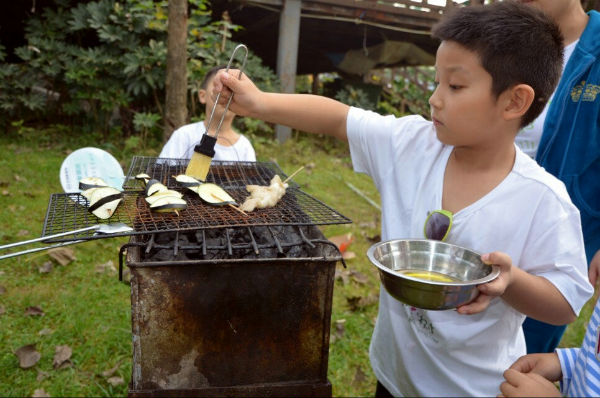 不多时,一串串色香味俱佳的烤串就已经被迫不及待的大小泡泡放进了嘴里。班妈周茜老师和各组组长组成的美食评委团对各组的美食进行了考评,他们将会在活动结束时评出各种厨艺奖项。