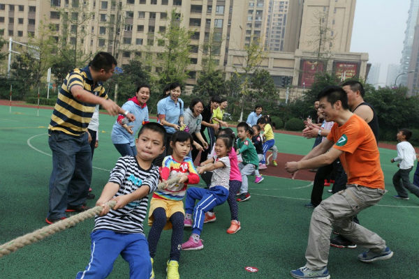 最激动的项目莫过于拔河比赛了,从小泡泡们拔河的表情就可看出他们是多么地全力以赴,久未运动的泡爸泡妈们也纷纷卯足了劲齐心协力,最后泡泡家长组以全是精壮男士的小组获胜,小泡泡组却以女汉子居多的小组获胜,所以小泡泡们的实力不容小觑。