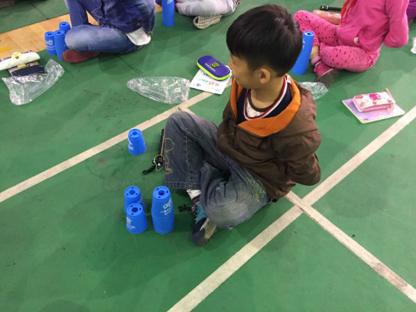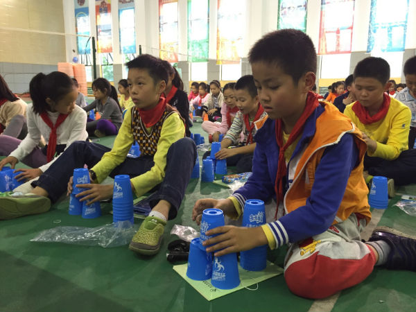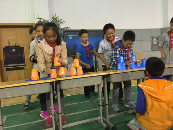 10月28日下午,泡小天府体育馆热闹非凡,时而欢呼、时而寂静……原来是省科协庄老师在给我校五年级学生执教一堂别开生面的科学课——“手部极限运动”《飞叠杯》。