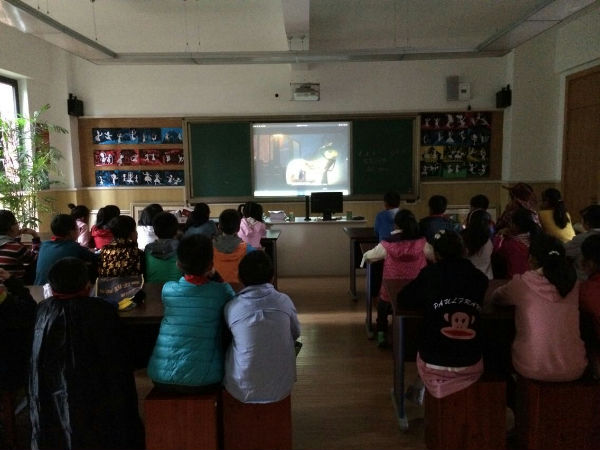活动三:万圣节动画欣赏。为了让小泡泡更深入更全面地了解万圣节,英语组老师精心选择了一部万圣节动画电影。看小泡泡专注的眼神就知道他们多喜欢了。Zombies, ghosts, witches各式各样的角色让孩子们时而大笑,时而紧张...。