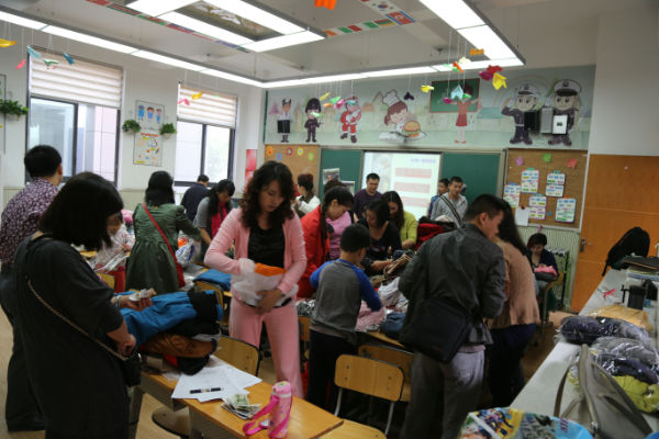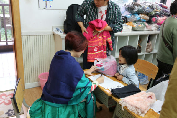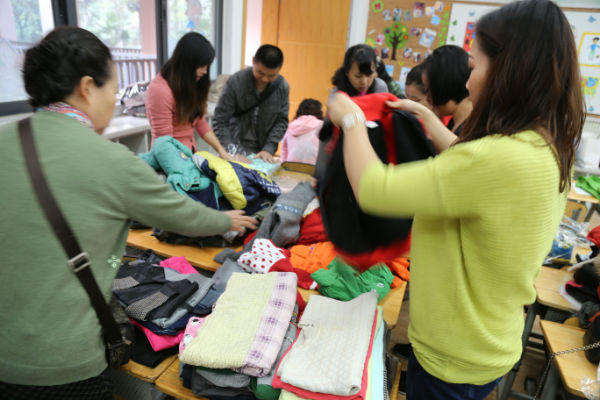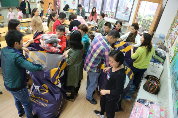 10月25日上午9点1.7班的小泡泡们在泡爸泡妈的带领下在教室进行了捐助活动,孩子们拿着事先整理好的干净衣物、鞋帽等兴奋地在家委会工作人员处逐一登记,同时按照每件2元的物流费用进行了现金捐助。最让人感动的是一位老奶奶从袋子里拿出了整整三打没有拆封的厚袜子,这是他们全家头天晚上才去为大凉山孩子们购买的。