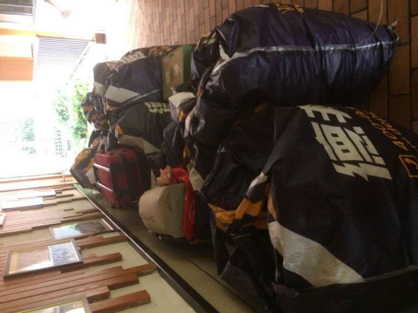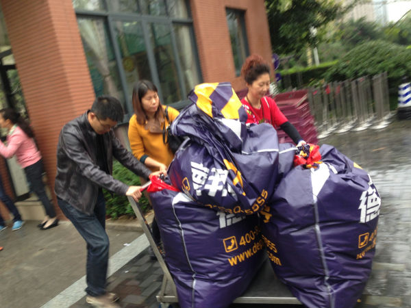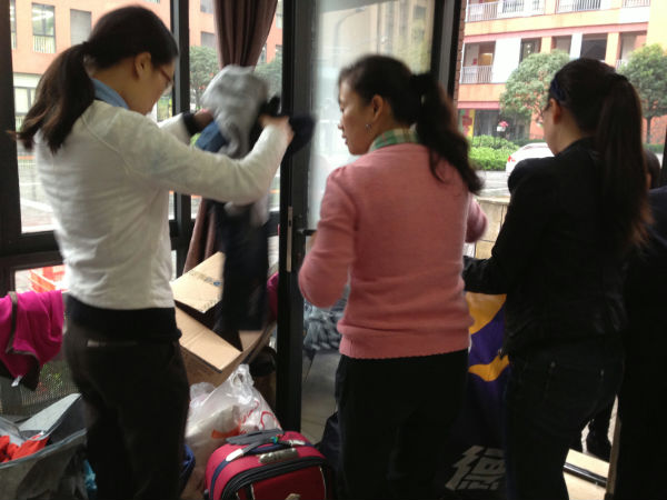 10月30日早上8点开始,班外捐助开始了,虽然天空下着蒙蒙细雨,但是丝毫也没有影响到泡泡们奉献爱心的热情,一件件、一包包寒衣在学校门卫办公室汇聚。当天下午18:00,事先预约好的物流卡车载着9大包共计836件上衣、下装、鞋子、帽子、围巾以及泡桐树小学(天府)满满的爱心启程向大凉山驶去!