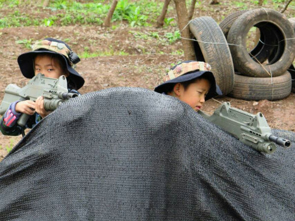 今天是一个太阳公公都在休假的好日子,冒着绵绵细雨,我们的神兵速成营向着训练基地快速挺近!不到一个小时,目的地到,洛带“某秘密军事基地”!教官恐龙哥哥先是率领众大小青年来上神曲《小苹果》暖了暖场。接着,大家战袍一披,冲锋枪一背,先学习如何握抢、瞄准、射击,几个回合下来,二杆子小兵们就算是掌握基本技能了。然后就开始军事训练,怎么走步、怎么隐蔽、怎么分辨自己是死是活!小兵们很是带劲,在各自的壕沟里亢奋地射击着,全然不顾头上的阵亡灯早已闪红。