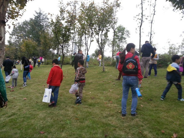 凉风习习,温润的空气中弥漫着秋日的花香,在美丽的景致中徐徐走来,心情是无比的放松。草坪上,湖滩边,小径旁,到处是泡泡们欢乐的身影,象小燕子般自由而轻盈。当然,小泡泡们不会忘记今天的任务呢,他们认真地采集着各种标本:小落叶,小昆虫,小树枝,小石头,为自己的小贴画做着着准备;大泡泡呢,帮孩子辨认标本,讲解自然知识,为孩子擦去汗水……, 仿佛置身于环保大课堂,人与自然构成了一幅幅和谐而生动的画卷。