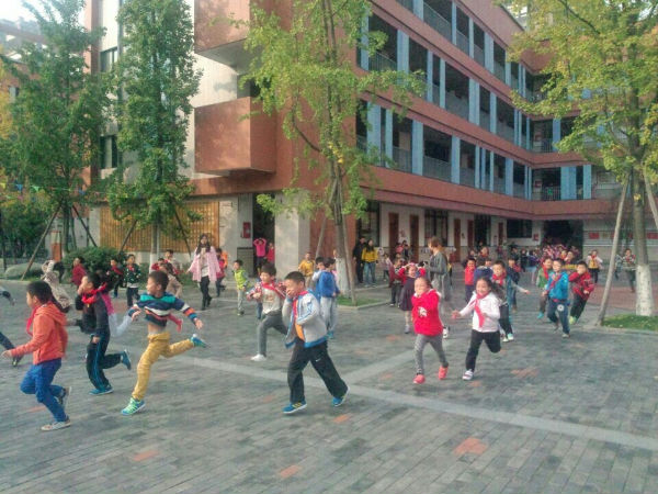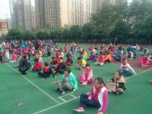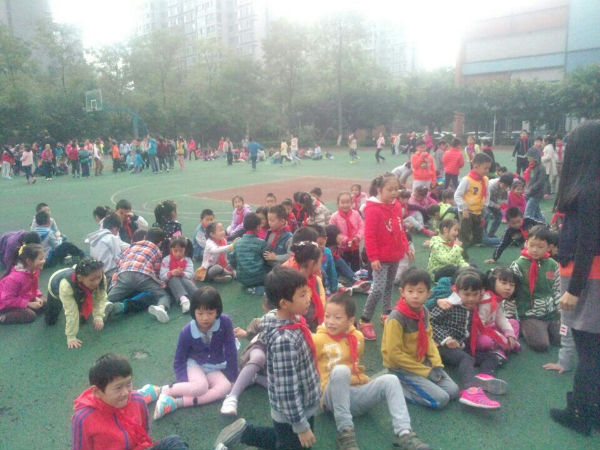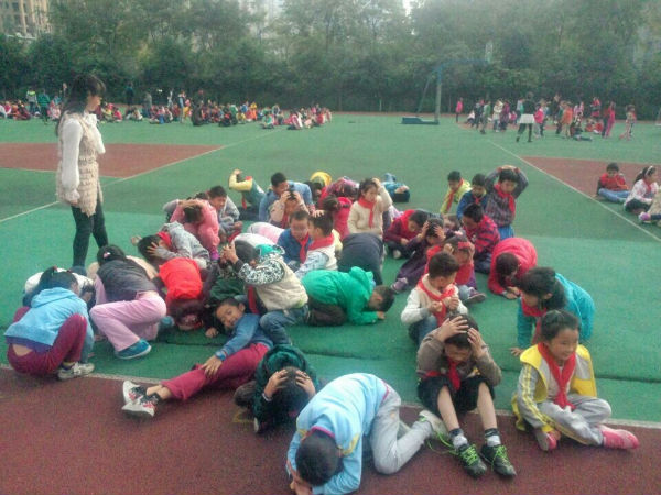 随着广播里面的警报声音,同学们有序快速的到达了安全地点操场。本次撤离共耗时2分零5秒,撤离到操场以后,各班派代表向方老师汇报了人员撤离情况。