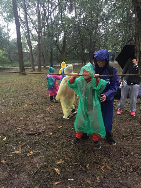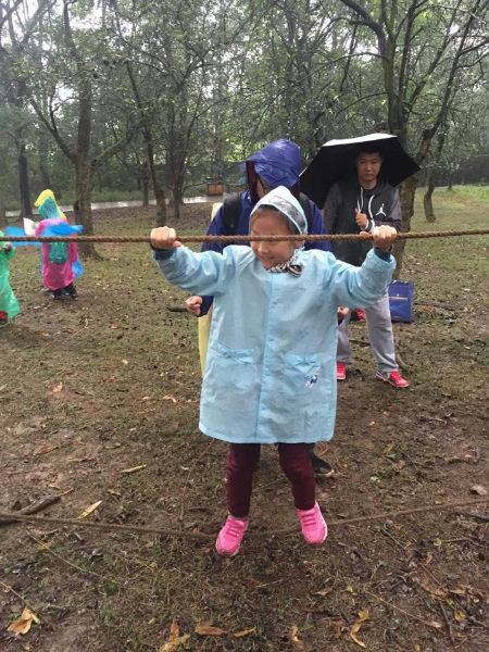 虽然在雨中,可泡泡们都玩的不亦乐乎!这是一次不一样的体验,我们的小泡泡们并不是那么的娇气,他们充满活力,不怕失败,团结一致,认真好学,对所有的事情都充满了好奇。大泡泡们都感动着小泡泡们的成长,我们都为你们骄傲!