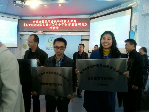 四川省教育科学研究所教育科研管理室青春副主任宣读了四川省教育厅普教科研重点课题《基于创新课程实验室的中小学创新教育研究》总课题立项通知。课题主研、四川省教科所信息室主任李维明主任介绍了课题基本情况及宣读首批四川省教育厅基础教育重点课题创新教育实验学校与子课题立项通知。我校申请了子课题研究,接受了四川省教育厅基础教育重点课题创新教育实验学校授牌。