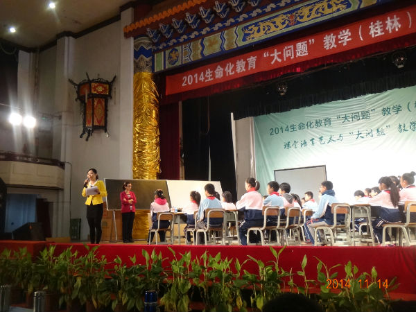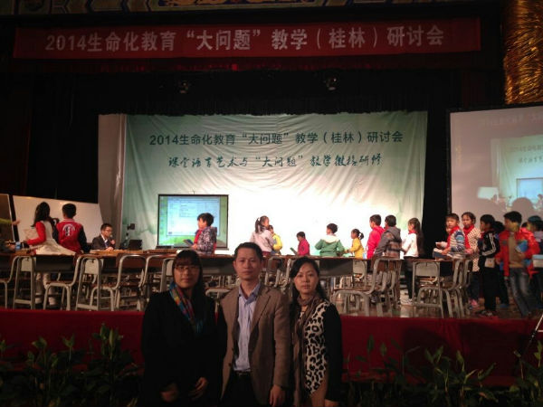 “问题让学习发生,课堂以学为核心,紧扣教学的本质”牵引着老师们的心。来自全国不同地域、揣着同一梦想的老师们,于2014年11月12日在桂林拉开了“2014生命化教育‘大问题’教学研讨会”的帷幕。泡桐小学天府校区和蒙彼利埃小学的欧小丽、廖敏和黄际三位老师参加了此次盛会。出席此次研讨会的有生命化教育的倡导者张文质、广东省深圳市教育科学研究院黄爱华、美国国务院AERO项目国际学校数学专家詹妮弗?格里芬以及来自全国各地的近600名教师。