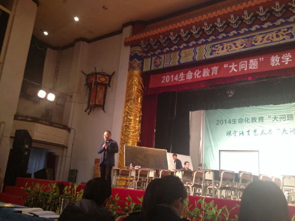 我校老师在此次盛会中全程观摩,积极参与。黄际老师参与“大问题”教学的微格研修,并同美国詹利弗?格里芬老师现场对话。欧小丽老师与张文质老师一起做现场报告《把功夫变为工具——教师的本分与境界》。