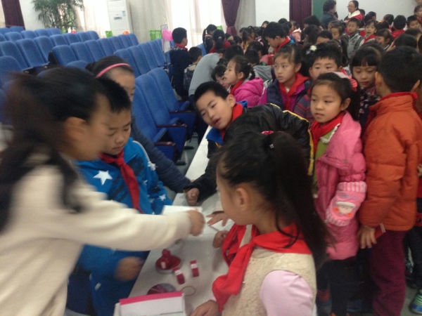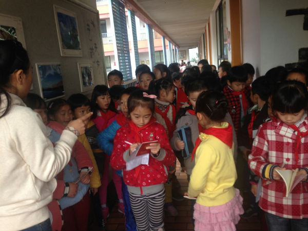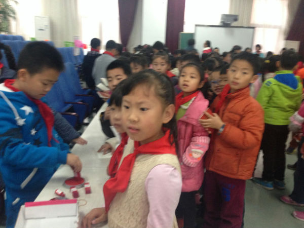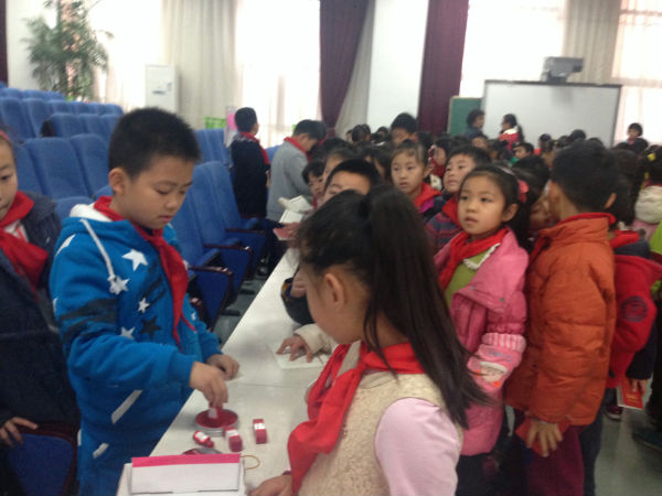 走进每个学科体验室,在孩子志愿者的维持、引导下,各年级的孩子井然有序,排队---面对不同的老师答题---盖印章,每完成一项小本子上便可以取得一枚印章,每个孩子脸上都洋溢着成功的喜悦。特别的礼仪印章更是促使每位孩子遵守文明礼仪的“法宝”。