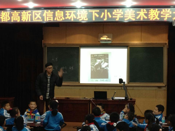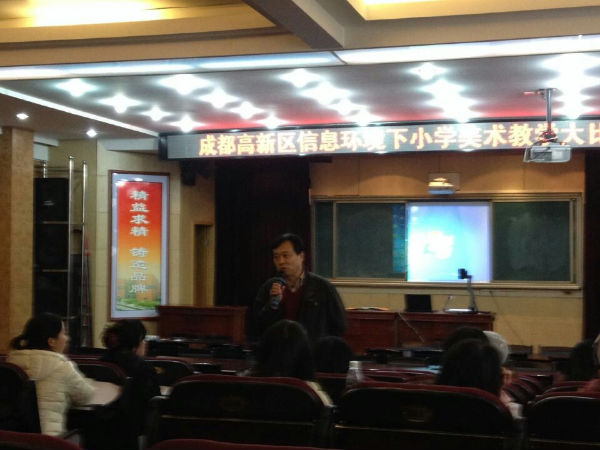 2014年11月25日,在成都市高新区实验小学举行了“2014年高新区信息技术下小学美术教学大比武”活动,我校美术组青年教师邓鹭、李世涛经过前期精心准备、层层筛选,脱颖而出,代表我校美术组参加了此次赛课活动。