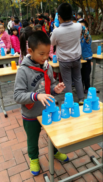 为了提高学生的动手能力、协调能力、观察能力、想象能力和创造能力,科创组策划、实施“智力飞叠杯”活动。