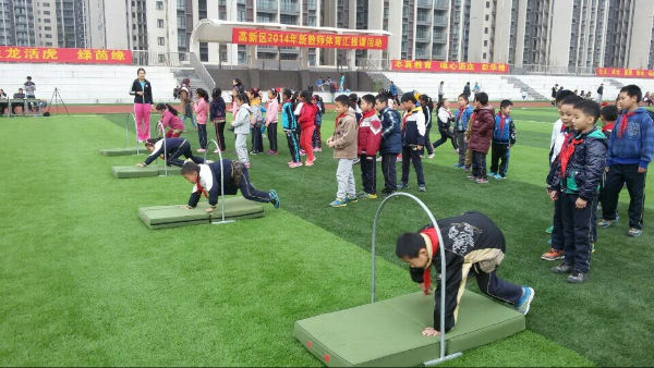 11月28日,体育组王慧老师在高新区新华学校执教以《障碍跑》为课题的游戏课,课后评委们都对本堂课给予高度的评价,并称赞到:“对于一位刚从高校毕业的大学生能把小学课堂上得如此生动、活泼实属不易。”