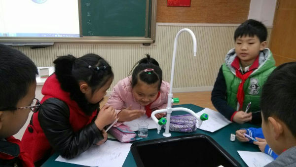 首先由沈爱华老师为三(6)班执教一堂《水》实验课,以猜谜引入,经小组猜想、观察、探究等环节使学生在动手中获得有关水的相关知识,在沈老师引导下学生参与欲望强烈。接着由全国优秀教师、成都市特级教师唐俊峰老师在五(1)班执教《岩石的变化》常态课。唐老师课上以问题由学生提出,答案从学生中产生为主线。引导把握相当有度,贯穿幽默风趣,使得课堂高效,轻松愉快。
