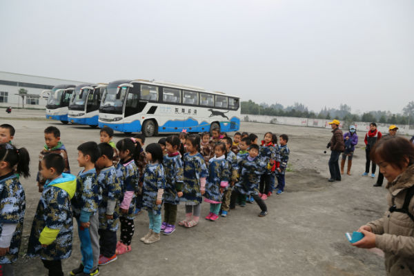 一大早,三辆排列整齐的大巴将一七班109名大小泡泡带到了位于温江区的成都农业科技职业学院。