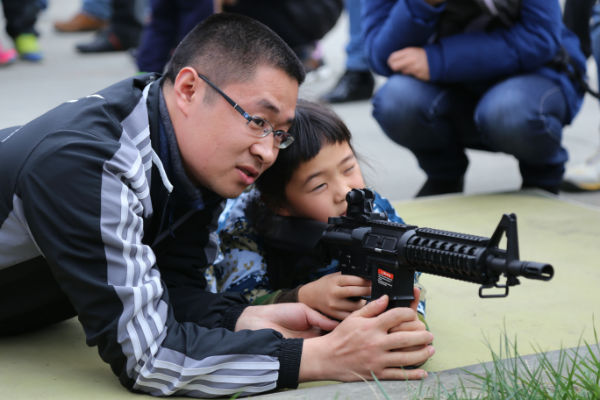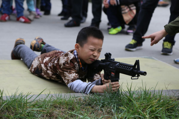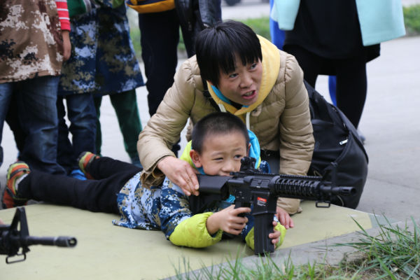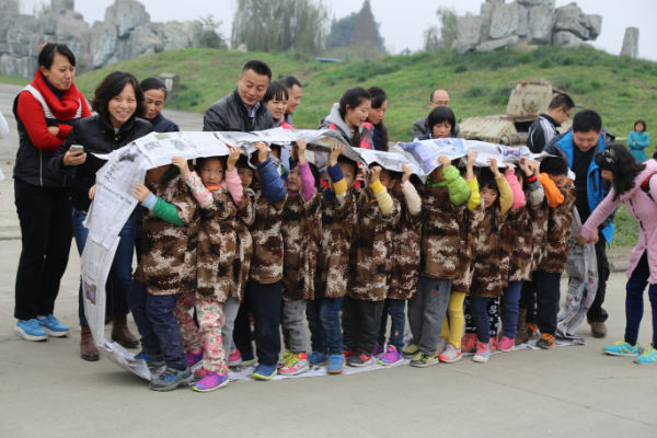下午2点,我们一起乘车来到了军事体验基地,所有人看到基地的坦克、飞机都沸腾了,当孩子们得知后面的三个项目是南水北调、铁甲战车和打靶训练时,每一位小泡泡都充满了无比期待的眼神;
