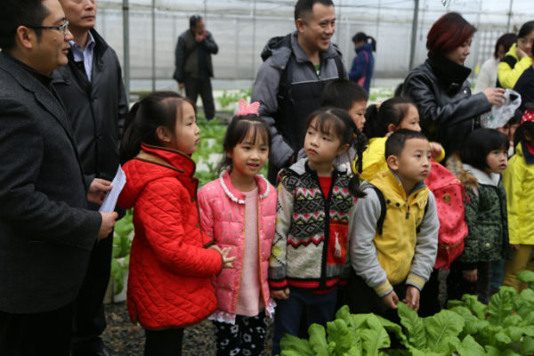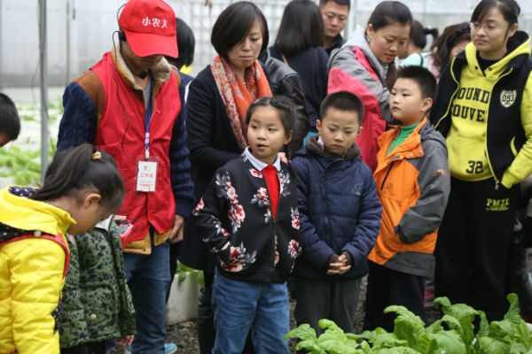一下车,在讲解员的带领下孩子们迫不及待的开始参观大田,联棚,果园,认识常见农作物及有机蔬菜瓜果;