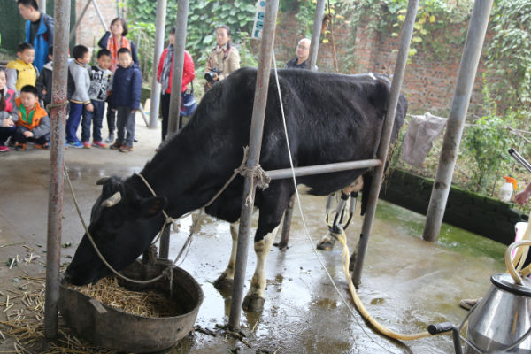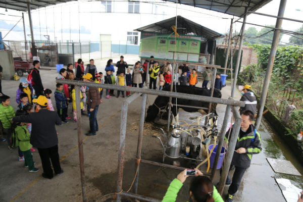 一个小时候后,我们又开始充当小小饲养员,饲喂小动物 参观现场挤牛奶、品尝牛奶;