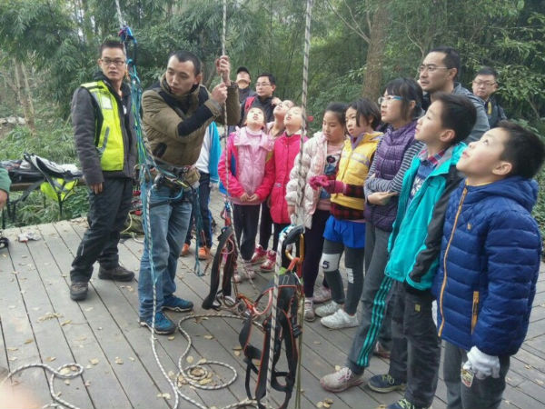 捉虫子,找树叶,爬树,炸弹游戏......小泡泡与大泡泡在大自然尽情游戏了一整天,其中,最受大家喜欢的游戏当然是爬树啦。在户外青少年训练营的哥哥姐姐们的示范和帮助下,四一班的小泡泡大泡泡们练习如何借助于绳子、各种扣子等一整套工具爬树,完成上升、下移、旋转等动作,最终达到在大树间自由穿梭的目的。