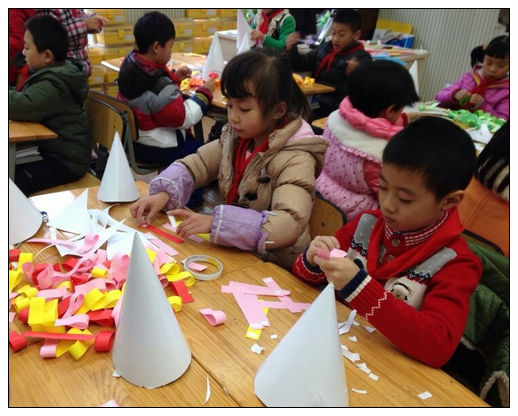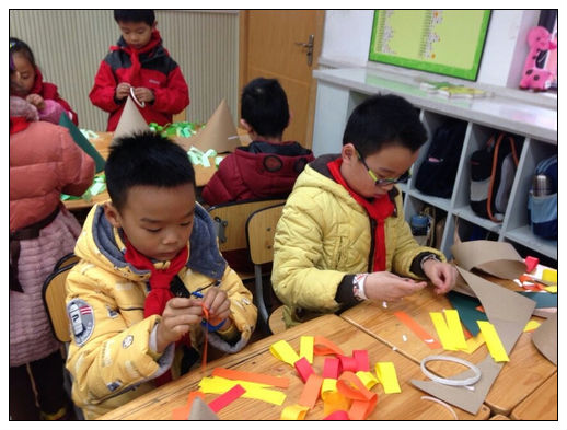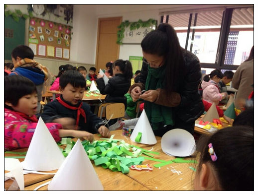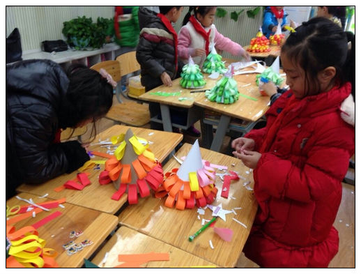 距离圣诞节只有一周的时间了,商场里早已是节日的气氛,背景音乐换成了《Jingle Bells》,玻璃橱窗贴上了圣诞老人和他的驯鹿,不少家里的圣诞树也布置装饰了一番,今天二九班的教室也热热闹闹地用一堂手工课唱响了圣诞节的序曲。