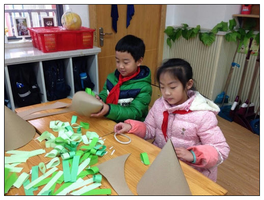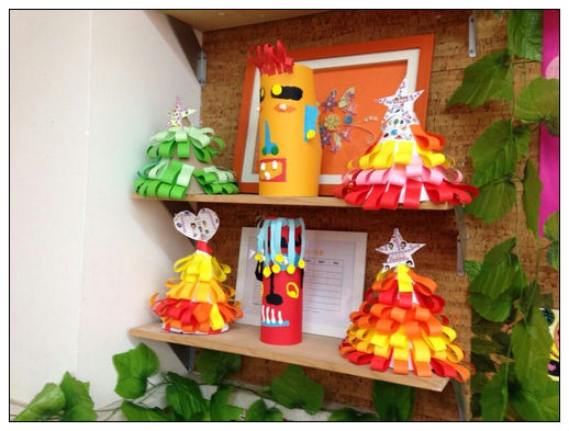 这一次的手工课结合了语文“我的玩具和游戏”主题单元课程,孩子们拿起剪刀、胶水,亲自动手制作自己的玩具圣诞树。如今孩儿们使用剪刀可是娴熟极了,粘贴功夫也不赖,配色、造型功力更是了得。