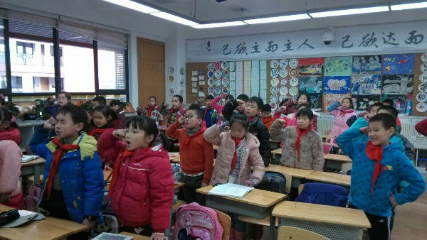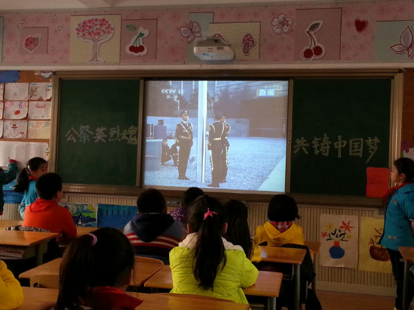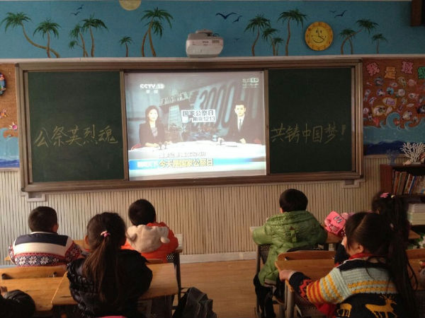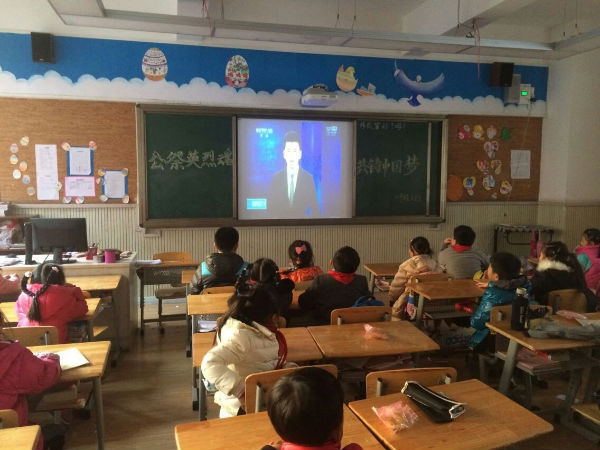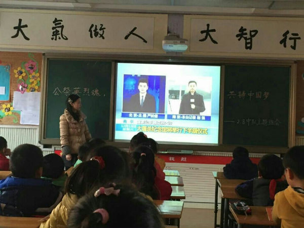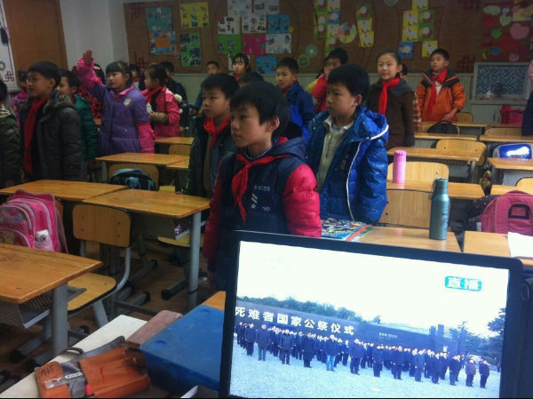 12月19日,成都市泡桐树小学(天府校区)各班利用少先活动课举行了“国家公祭日”纪念活动,主题:“公祭英烈魂,共铸中国梦” ,全校学生宣读