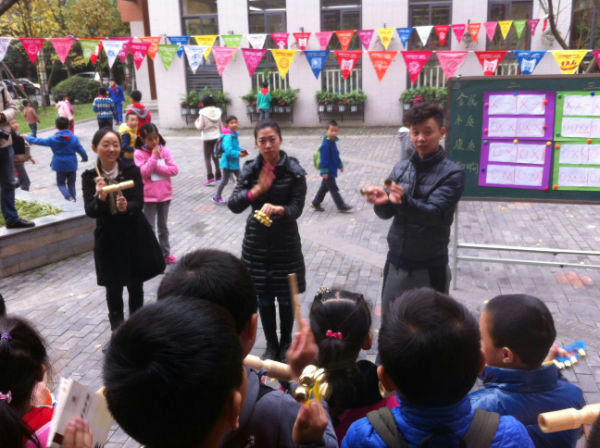 11月28日,“我行我秀”的打击乐现场排起了长长的队伍,可谓是“生意相当火爆”志愿者们组织同学们在排队的过程中分发乐器,孩子已经有了第一次体验,接下来有序进入展示区,根据音乐的拍号,选择孩子们喜欢的方式进行第二次体验,两曲完了之后,孩子们在志愿者的引领下互相敬礼,谢谢大家共同的合作创造了美好的瞬间,然后依次序归还乐器,再去盖章,算是完成了全部的过程。有的孩子来了三次,觉得没有玩够,还想再玩,还有的孩子是申请要领唱,其中,《红蜻蜓》和《听妈妈的话》最受欢迎,3.6班的覃添时激情澎湃地演唱了《我是草原小牧民》,美妙的嗓音和生动的表情得到了阵阵掌声。老师在孩子们的带领下也动起来了,《相亲相爱》的音乐徜徉在校园的上空。这次活动离不开几位志愿者的帮忙,余榛这位瘦瘦的孩子用执着和良好的乐感鼓舞着现场的每个孩子,兰茜小姐姐分发乐器时都会教孩子们一个正确拿乐器的姿态,则佑来回跑动,力图在几秒内让所有的孩子都能拿到乐器,萌萌、睿韬、睿娴等孩子在盖章处做出了合理地分工,让参与者高兴地来满意地离开。从志愿者的工作中可以看出,我校的办学理念“为了每一个孩子的最大可能发展负责”已经得到了体现,而且从孩子们的责任心、工作能力上都可以看出,这样的理念无疑会让更多的孩子受益,未来孩子们会成长得更茁壮!