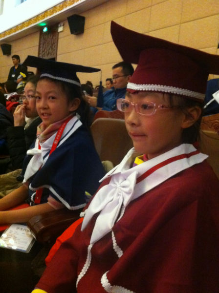 2014年12月26——29日,我校五年级二班的三位同学(唐蕴琦、敬双与、文绎博)在何国英老师的带领下赶赴北京参加“第十一届中国少年科学院小院士课题研究成果全国展示的交流活动。在经过论文讲解、论文答辩、现场提问等环节后,我校唐蕴琦获得全国科技论文一等奖,并获得“中国科学院小院士”的称号。敬双与和文绎博分别获得“中国科学院小研究员”的称号。我校首个中国科学院小院士诞生了!