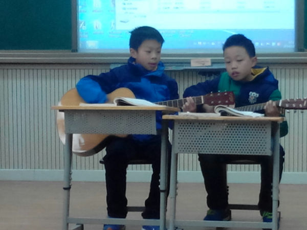 12月31日上午,为了迎接2015年元旦的到来,丰富同学们的校园文化生活,培养学生的高雅情趣,五年级组在各班教室开展了“迎新年、庆元旦”新年音乐会。