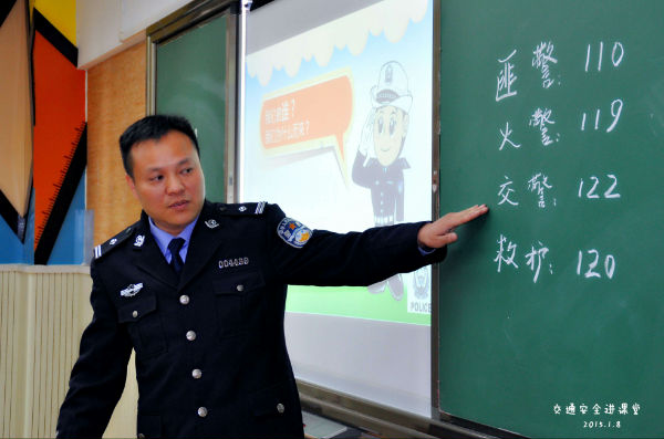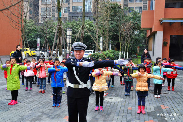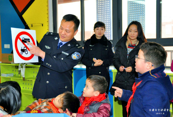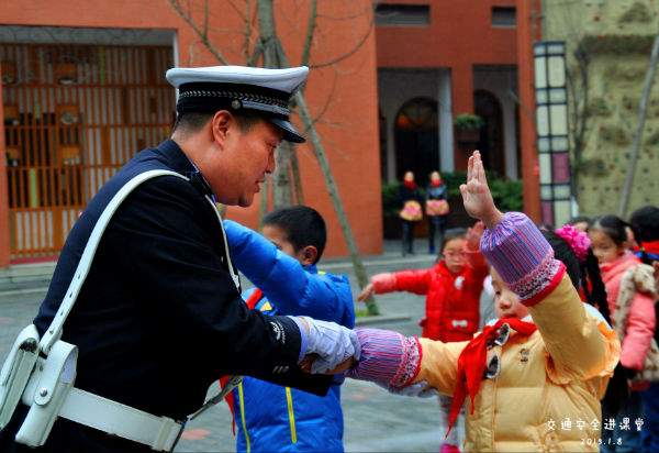 为帮助小泡泡们从小树立“交通安全,从我做起”的意识,2015年新年伊始,一年级五班邀请来成都市公安局交通管理局的民警李明昭和刘利,为小泡泡们举行了一堂别开生面的交通安全知识培训讲座及演练活动。