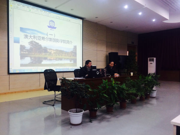 2015年1月24日上午10:00,泡小天府校区澳洲游学交流会在二楼阶梯教室如期进行,参加本次活动的有泡小天府校区陈冠夫副校长、李世涛老师、李瑶老师,希尔斯国际学院驻西南办事处黄艳老师及其团队,以及来自三四五年级有意向参与本次游学活动的150余位泡爸泡妈。