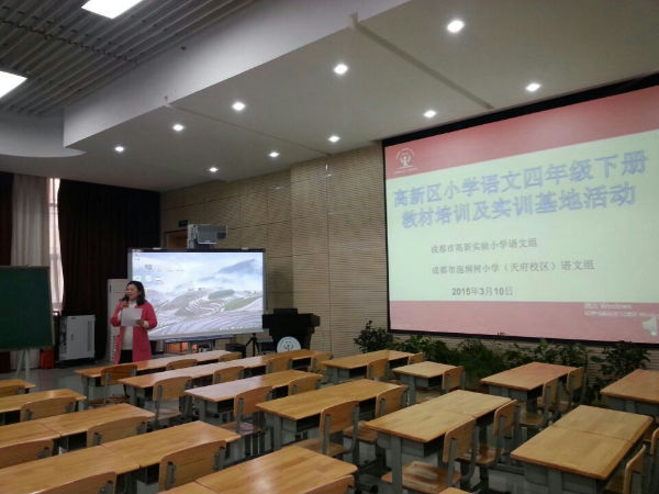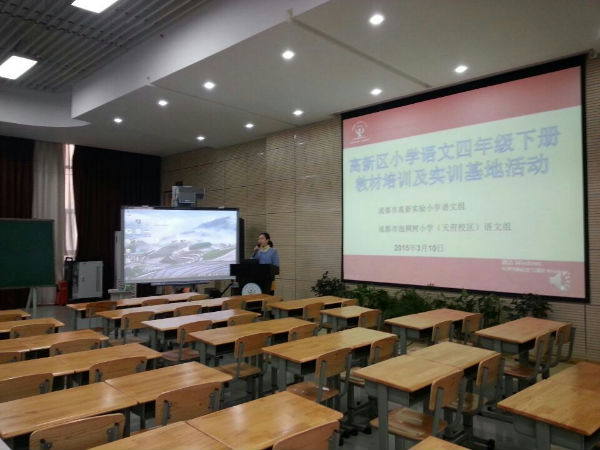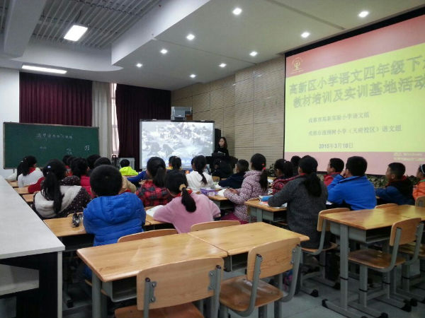 2015年3月10日下午,高新区小学语文四年级下册教材培训暨高新区实训基地活动在成都市泡桐树小学(天府校区)多功能厅举行。本次活动主要由高新实验小学和泡桐树小学(天府校区)老师共同完成。高新区语文教研员、泡小天府副校长宋茜老师现场指导。