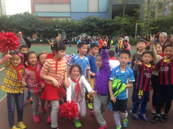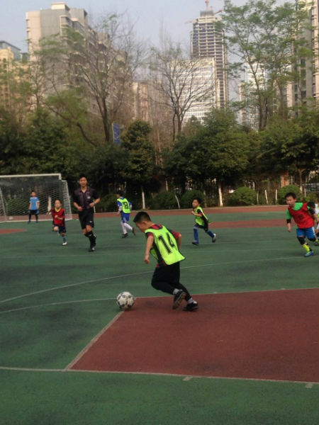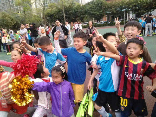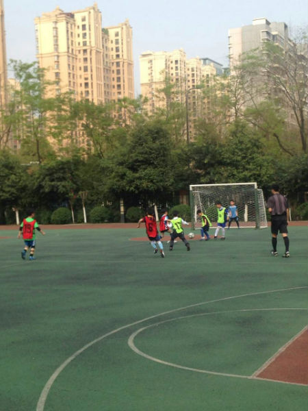 今天下午,在学校的操场上进行了一场精彩的足球比赛,由二年四班对阵二年八班。一开场,四班的小队员就给八班的球门造成了极大的危胁,场边的啦啦队也不甘势弱,伴随着阵阵的鼓声,大声地为场上的同学们加油。小队员们积极拼抢,突然,陈天乐重重的摔倒了,小伙伴们都倒抽一口气,跑过去帮助他。他顾不上疼,从地上爬起来,又投入了激烈的比赛中。最后,刘彦岑一记精彩的任意球攻入了对方的球门,结束了今天的比赛。