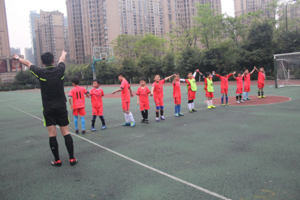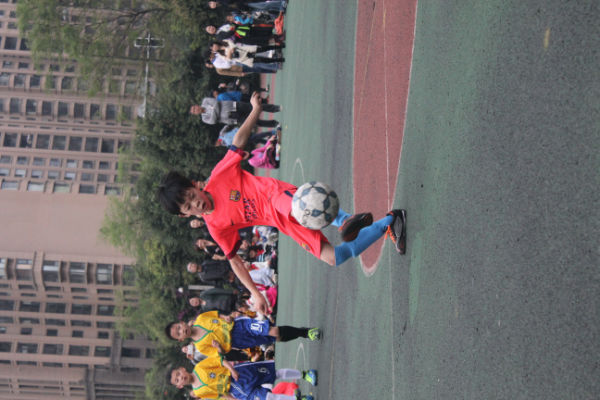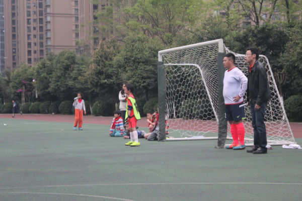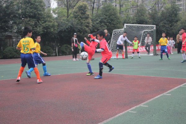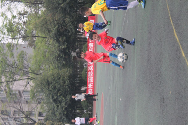 3月18日下午5点40分,泡小天府绿茵场上正在上演一场激烈的足球赛,主角分别是二年级五班和三年级六班。