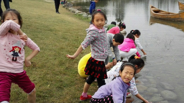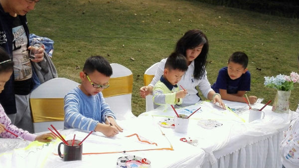 一抵达绿茵幽幽、杨柳拂面的湖边,大小泡泡们就被优美的环境、好玩的项目给吸引住了。斯文的孩子沉迷于DIY盆栽、爱画画的孩子们爱上手绘风筝、好动的孩子放风筝捉迷藏、调皮的孩子则被湖里的小蝌蚪给吸引住了。而大泡泡们则围坐在一起,一边惬意的享用着水果、点心和茶水,切磋育儿经验、增进彼此友谊。每个人都自得其乐、陶醉在春光里。