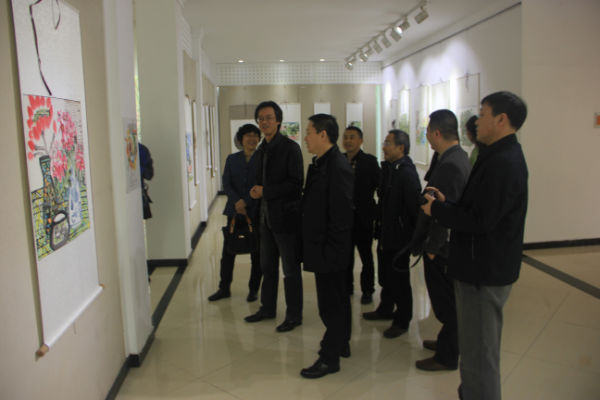 在芶鹏校长的引导下,来访嘉宾走进了我校一年级班级,观看了我校教室的基础设施建设、教学班级的组成以及特色的班级文化建设;途经天府艺术中心,参观了我校正在举办的“小荷才露尖尖角”美术展览,唐励副主任一行仔细观察了正在展览中的孩子们的作品,对孩子们深厚的美术素养、精湛的绘画技巧连连夸奖,芶鹏校长向来访嘉宾介绍了我校美术馆“开放办馆”和“每月一次展览”思路,以及“服务全体学生”的服务理念,深受在场嘉宾赞扬。