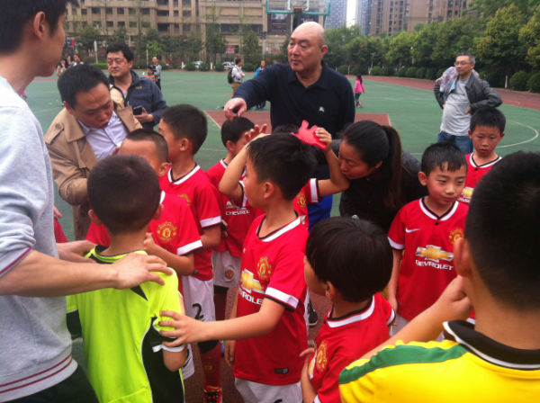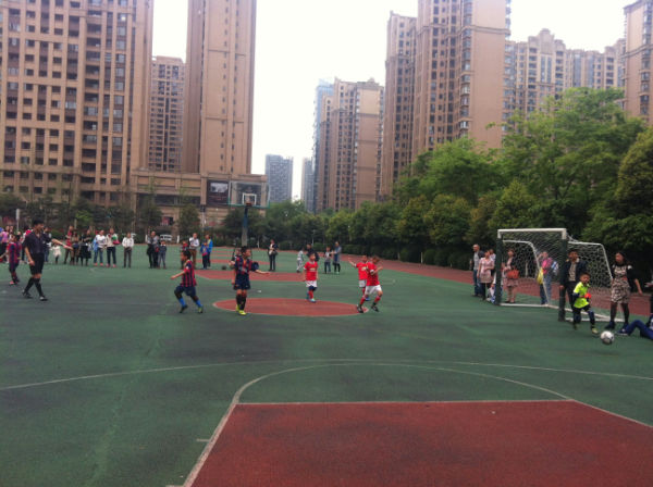 场上比赛继续着,之间2.3班足球队在他们的核心队员孙竞康的带领下,向对手的球门发动了一波又一波的进攻,场面上一度占据了主动,并且在比赛进行到上半场12分钟的时候,前场抢断成功,只见孙竞康从容拿球以后快速突破到对方禁区右侧,起左脚将球打进,场上比分1:0,2.3班沸腾了,孩子们抱在一起,欢声一片,用他们的笑声庆祝着进球。接下来的比赛对手明显加强了攻势,但都被2.3班的队员们一一化解了,正当大家暗自舒了口气的时候,意外发生了,我们的球员在自己禁区中一个手球犯规,给对手造成了一个点球,随着点球的罚进,场上比分变成了1:1,2.3班的大小泡泡们瞬间又变得紧张起来,不过,在2.3的队员们严密的防守下,将场上比分保持到了终场,比赛被拖进了残酷的点球大战。