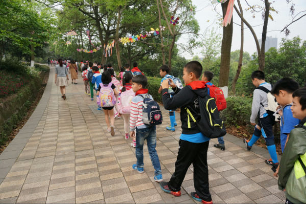 阳光透过婆娑的枝叶,洒下星星点点的光斑,林间小道上洒满了孩子们的欢声笑语。